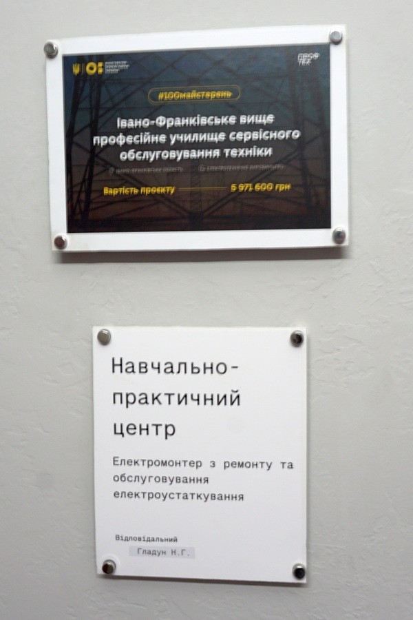 30 січня 2025 року на базі ДПТНЗ «Івано-Франківське вище професійне училище сервісного обслуговування техніки» відбулось відкриття навчально-практичного центру з професії «Електромонтер з ремонту та обслуговування електроустаткування», який створений в рамках урядової ініціативи «100 майстерень» на засадах співфінансування з державного та місцевого бюджетів, а також коштів закладу освіти.