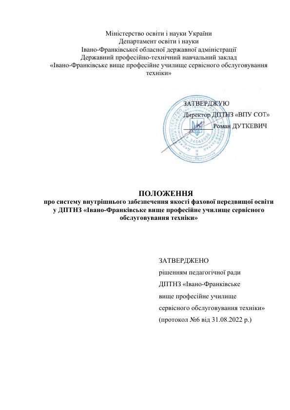 Положення про систему внутрішнього забезпечення якості фахої передвищої освіти 14 Квітня, 2025 Your Name